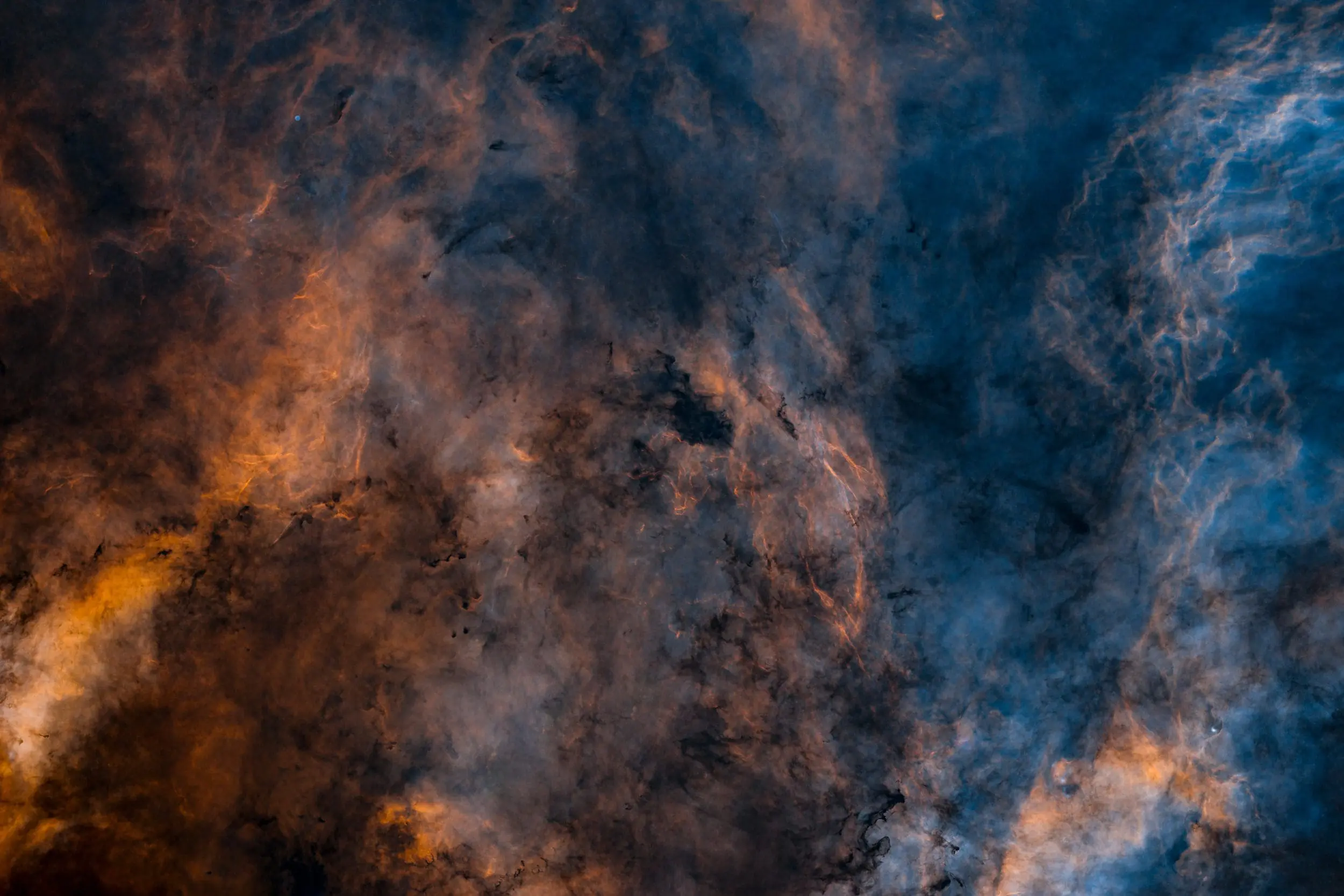 This dark nebula structure sits next to Sadr within the Cygnus region.  This is 13.5 hours of imaging in HSO.  It was heavily saturated with stars in this milkyway region, so I removed them for a clear picture of the nebula structure.